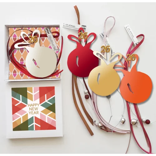 Γούρι ρόδι από πλεξιγκλάς σε κουτί σε τέσσερα διαφορετικά χρώματα.